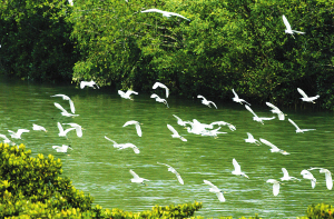 生态是宜居海口的最大资源。南部,16.5公里生态绿带夹在椰海大道与绕城高速公路之间,石漠荒山变成了湿地公园和高端旅游目的地;东部,红树林湿地系统的生态红线范围由5万亩扩至12万亩,用立法的方式将其保护;城市管理尤其重视水体面积、河道宽度、绿带宽度、山体禁建线。