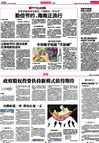 当前,粽子已经从传统节日食品变成日常食品,走进酒店,走进大街小巷,走进百姓日常饮食,拉长了大米、猪肉、粽叶生产等下游产业链,带动了农民增收。今年,海南粽子又实现质的飞跃,走上飞机,从传统食品变成航空食品、旅游食品。我们期待,小小粽子越包越“大”,越来越香。