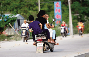 在很多村民看来,自行车与摩托车的区别在于用人力和用汽油,并不了解或不在乎摩托车需要有证驾驶,超载、超速、逆向行驶等均是违法行为。