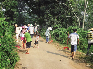 当天下午3时许,记者在久温塘村看到,80名当地干部群众手拿扫把、铁锹、耙子等,对牛粪便、塑料袋、杂草及其他垃圾进行清理。经过一个下午的劳动,该村道路变得干净整洁,房前屋后也没有了乱扔的垃圾,千年古村恢复了往昔美丽的面容。