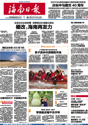 海南日报 头版 001 2014-06-011 2014年06月01日 星期日