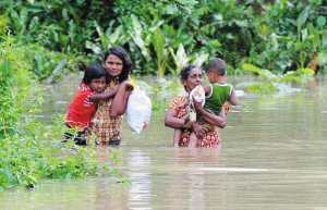6月3日,在斯里兰卡首都科伦坡以南约64公里的马图格默,当地居民在洪水里划舟前行。
