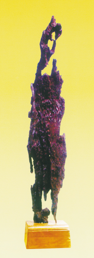 海南工艺美术大师王国华此次带来了《禅思》《道行天下》等多件人物雕刻作品,他笔下的人物表情丰富、感染力十足,尤其是对眼神、笑容等局部的刻画,能传递出喜怒哀乐的情绪,引人思考;而另一位海南工艺美术大师王家峰则把抽象艺术运用到了降真香雕刻中,两件作品《岁月》和《记忆》依据材料的形状略加修饰,不规则造型和不动声色的创作手法,令人回味其中的艺术况味。