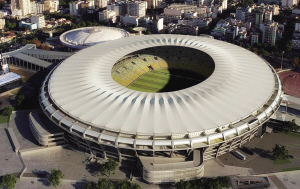 马拉卡纳体育场或者马拉卡纳球场的名字更被世人知晓和使用,这座球场为1950年巴西世界杯而修建,举办了被认为是那届决赛的赛会最后一场比赛,巴西对阵乌拉圭的比赛,但巴西队戏剧性地1:2输给乌拉圭而丢掉的冠军。该球场1948年开始修建,2年时间建成,建成后能容纳20万人观看。里约热内卢将举办在当地时间2014年7月13日的第20届世界杯决赛,此外还有6场比赛在马拉卡纳体育场进行。