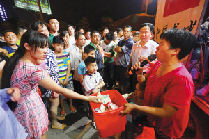 在事发现场,前来围观的娄底市民为殷晓非的英雄壮举所打动,得知殷晓非家庭困难,且有三个年幼的孩子需要抚养,人们在现场纷纷慷慨解囊向殷晓非家属捐献爱心款。短短一个小时,殷晓非家属收到的爱心善款已超过3万元。 新华社发