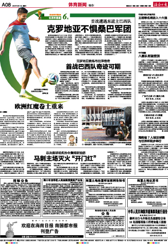 海南日报 体育新闻综合 008 2014-06-071 2014年06月07日 星期六