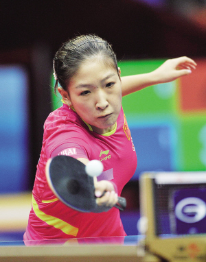 6月7日,在四川省成都市举行的2014年中国乒乓球公开赛女子单打第二轮比赛中,中国选手刘诗雯以4:0战胜韩国选手田志希,进入下一轮。 新华社发