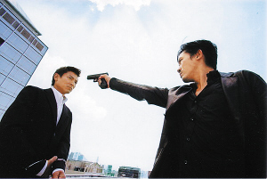 弱化枪战的最大意义,其实是弱化了过去的一个观影噱头。正邪双方用子弹说话,你来我往的互射里,观众看得过瘾,角色们打得也开心,而对于创作者而言,当电影里的戏剧矛盾到了一个无法解决的时候,让主角用枪来一决生死是个很好的手段,观众也会被吸引,淡化剧情的种种不合理。而在新世纪后,港产片制作越来越追求精致化,剧情要合理,逻辑要慎密,演员更得有演技,观众对“斗智”的欣赏程度超过了“斗勇”———在戏剧世界里,用枪杀掉一个人是很容易的事,但要用计谋去害死一个人,则需要做出精心的铺排。因此,《无间道》在出色的剧情设计上征服了观众,编导自然也有信心,不让枪战过多地干扰剧情的进展,也让整部电影显得精致优雅。