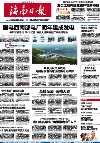 | 海南日报 头版 001 2014-06-091 2014年06月09日 星期一 |