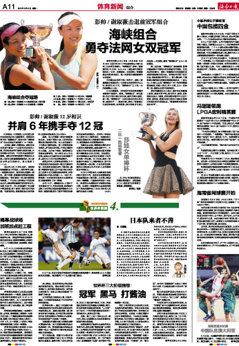 | 海南日报 体育新闻综合 011 2014-06-091 2014年06月09日 星期一 |