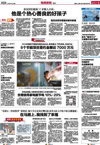 | 海南日报 海南新闻综合 004 2014-06-091 2014年06月09日 星期一 |
