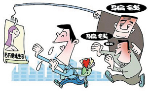 警方解析:骗子通过张贴或在网站上发布“真情求缘”、“重金求子”、“回国寻缘”、“借精生子”的小广告,或者通过拨打电话、群发短信、QQ聊天等形式,自称是很富有的“美女”,但其丈夫不能生育,给禁不住诱惑的当事人造成“财色双收”的错觉。待上当后,骗子就会以收取保密费、公证费、路费、律师费等为由,甚至称已来到当事人所在的城市,让受害人不停地汇款,直至受害人发觉上当受骗。