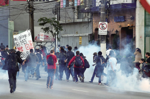 当日,巴西一家地区劳动法院判决日前的地铁罢工为“非法”,并向相关工会组织开出了50万雷亚尔(约22.3万美元)/天的高额罚款。2014年世界杯揭幕战举办地、巴西最大城市圣保罗5日发生的地铁罢工已经进入第五天,造成该市大面积交通拥堵。 新华社/法新