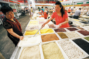 6月10日,在安徽淮北市惠黎路市场,市民在选购杂粮。