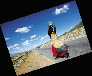 邢益群说,在西藏,圣徒们叩长头的虔诚姿态,彷佛是在自我的内心世界雕琢一件庄严而精美的艺术品,甚至这还远远不够。他们相信这样的举动是在自己的骨子里和精神内核之中与生俱来的,如同我们仰望星空,俯瞰大地,这种及其自然而深入血脉之中的骨肉连接和悲悯情怀,让所有人虔心而自然的对待神灵众生,在这样的境界里,人心不虚妄,世界不癫狂。