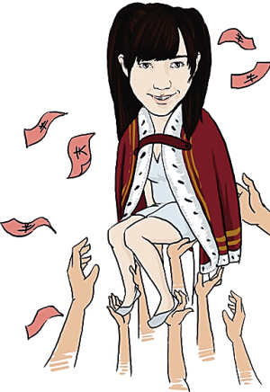 所以,AKB48之所以能极大地唤起集资热情,正是因为她们是“未完成的艺人”,总选举的成败,决定着接下来一年公司的资源倾斜。180万这个数字其实也并不算多,早在2008年,内地选秀明星张杰的粉丝星星就为了“解约上腾”这个项目而集资百万,若加上比赛期间的投票集资、巡演时期的造势集资、生日时候的送礼集资等项目,大概星星(张杰有一首歌叫《北斗星的爱》,其粉丝便被称为“星星”)的总集资早已超过千万人民币。星星的投入造就了一代“内地小天王”,想必梦醒时分,他们耳边响着张杰的一代名曲《明天过后》,会觉得格外欣慰。