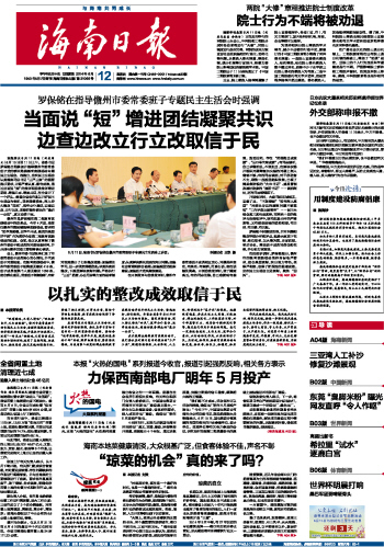 海南日报 头版 001 2014-06-121 2014年06月12日 星期四