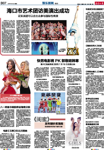 海南日报 娱乐新闻综合 015 2014-06-121 2014年06月12日 星期四