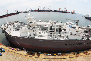 当日,在河北省秦皇岛市,河北山海关船舶重工有限责任公司为国外船东建造的第二艘载重2万吨水泥自卸船顺利交付。据介绍,山船重工共为这家船东建造4艘同型水泥自卸船。该船长157米,宽25.5米,深13米,配有一套先进的自卸装置系统。 新华社发(王寒植 摄)
