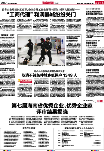 第七届海南省优秀企业、优秀企业家 评审结果揭晓
