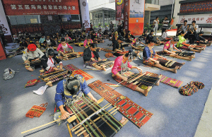 今年的“文化遗产日”,我省的活动主题口号为“非遗传承,人人有责”。记者在省博黎族织锦大赛现场看到,来自全省少数民族地区的50多名男女选手全神贯注投入大赛,穿针走线之间展示出了黎锦技工们精巧高超的纺织技艺,现场不时传来观众的掌声和惊叹声。