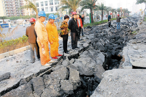 ———2013年8月14日,哈尔滨市辽阳街路面突然塌陷,4人落入深坑,两死、两伤。事故原因是连续几场强降雨造成土质沉降,致使老旧排污管线断裂,泥沙灌入人防工程洞体,最终导致地面塌陷。