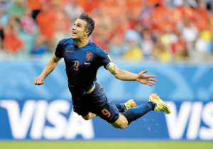 他就是范佩西,荷兰队的前锋。从今天开始,请叫他球场上的“飞鱼”。