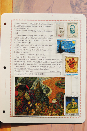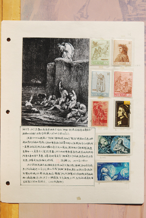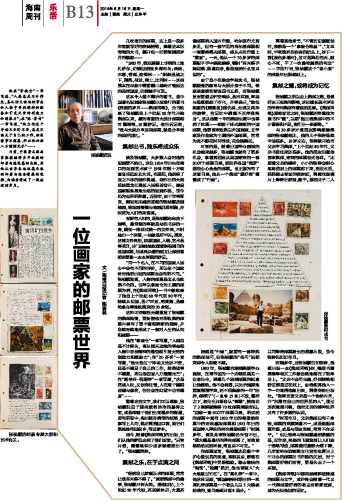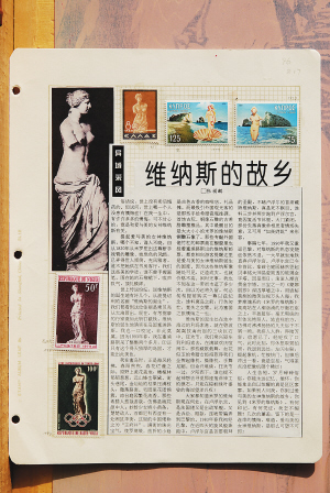 而鲜有人知的,是张祯麒每每放下画笔,最常做的事就是站在书房的一角,凝视一排样式统一的文件夹,不时抽出一个来看,一站就是好半天。原来,这排文件夹里,按照国家、人物、艺术品等项目,分门别类地收藏着琳琅满目的各国邮票,间或夹杂着的短文让邮册看起来更像一本本厚重的游记。