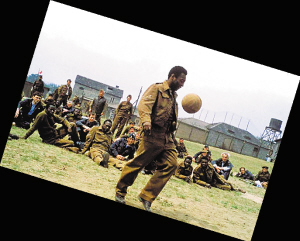 除了这些“传奇”的故事,足球在银幕上,有时竟然也有着四两拨千斤的政治作用。1981年的美国老片《胜利大逃亡》是个很可爱的例子。这部有球王贝利加盟的影片几乎将关于足球的喜剧做到了极致。说起来,这部片子与《京都球侠》多少有些相似之处,都是处于弱势的群体被迫同强势的队伍进行比赛,并最终取得胜利的故事。但是不同的是,《胜利大逃亡》选择的是一个令人欣慰的大团圆结局。战俘们最后越狱成功,获得了自由。而将残酷的战争浓缩到一场足球比赛上的想法,本身亦是对战争的一种幽默和嘲讽。
