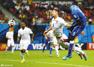 巴洛特利在世界杯上的第一粒进球并没有等待多久。第53分钟,坎德雷瓦在右侧摆脱防守之后斜传禁区,巴洛特利轻松地摆脱了卡希尔的防守,将球砸进了球网。这也是继2006年世界杯马特拉齐头球破门之后,意大利在世界杯上的首粒头球破门。进球之后,巴洛特利很冷静,可能是前几天的求婚成功让他变得更加成熟稳重。