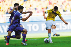 以南美区预选赛第二名身份拿到通往巴西机票的哥伦比亚队,技战术水准明显高过对手一个档次,去年以4500万欧元加盟法甲新贵摩纳哥并迅速在新东家立足的“007詹姆斯·邦德”,则在90分钟内用果敢突破和穿针引线将希腊后防线搅得天翻地覆、手忙脚乱。