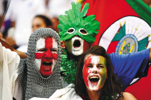 当世界杯足球赛在紧张而激烈进行的时候,有这样一些“花儿”浓墨重彩地怒放在看台上。