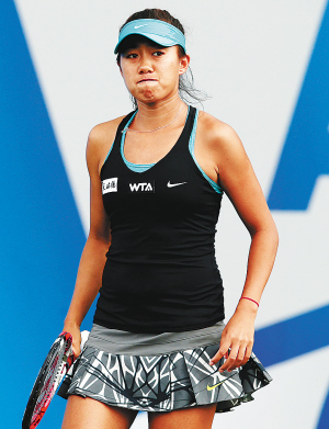 6月15日,在WTA伯明翰精英赛单打半决赛中,中国选手张帅以0:2不敌塞尔维亚选手伊万诺维奇,无缘决赛。图为张帅在比赛中。新华社发