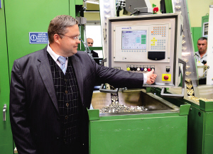 6月16日,立陶宛央行行长瓦西里奥斯卡斯在首批欧元硬币铸造仪式上按动电钮。