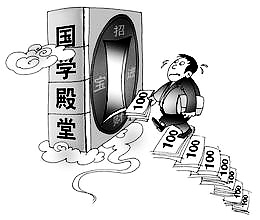 噱头光鲜,漫天要价。国学培训班往往打着大师旗号,收费不菲。刘兆基表示,太和文思的国学班收费是每月7500元,并且“只是目前的标价”,随着未来教育资源的完善,收费将提高到1.5万元,“我们能让孩子与顶尖的大师接触,范曾、刘欢,我们都可以联系到。”黄先生说,三畏书院近30天的夏令营价格为3900元,书院包吃包住。