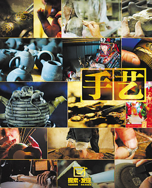 从6月14日起,每晚10时,中央电视台科教频道的《探索·发现》栏目开始播出百集纪录片《手艺》,该系列纪录片聚焦中国传统手工艺的制作与传承,从不同的角度展示中国传统手工技艺与手工艺人的现状。