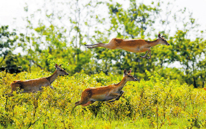 图为一群坡鹿在海南大田国家级自然保护区奔跑。本报记者 苏晓杰 摄