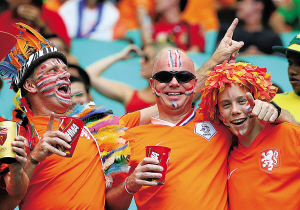 荷兰球迷在欧洲时喜欢开着车子跟随自己的国家队,巴西世界杯期间他们也将这一传统带到了南美。荷兰人开着他们的球迷花车在城市中穿梭、欢庆,让当地人也感受到了橙色军团的热情。