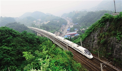 6月23日,一辆动车组列车在宜万铁路湖北恩施境内试跑。 宜万铁路是我国东西大动脉沪汉蓉快速客运通道中的一段,东起湖北宜昌东站,西至重庆万州站,全长377公里。受特殊地质条件限制,宜万铁路成为整条快速通道上唯一的“动车禁区”。随着宜万铁路宜昌至利川段隧道、路基、站台整改完工,宜万线已具备动车运行条件,目前转入联调联试阶段,预计7月1日沪汉蓉全线正式开通动车。届时,上海至成都、重庆将开行朝发夕至的动车。 新华社发
