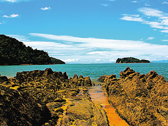 毛里求斯由火山喷发而成。火山岩沿毛岛东、西、北三个方向几公里远的地方筑起一道防波堤,站在海边,可以看见数公里外的地方波涛汹涌,而沿海数公里内的海水却平静如湖泊。这些静海岸铺满了白沙和黄沙,构成蓝天、碧海、沙滩立体图画,身在其中,如入仙境。