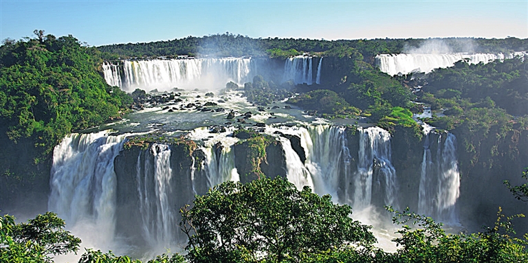 游览亚马逊河的时候可欣赏到天然奇观——黑白二水。所谓“白水”,指的是亚马逊主流河水,其颜色其实是浅黄色,而黑水就是黑河水。黑河因为全程几乎都在热带雨林里,茂密的落叶长年累积,把河水沏成了黑色。黑河汇入亚马逊河的地方,是观赏黑白二水奇观最好的地方。伊瓜苏大瀑布是世界上最宽的瀑布,早在1984年就被联合国教科文组织列为世界自然遗产了。最著名的莫雷诺冰川,是世界三大冰川之一。站在专门修建的观赏平台上,可以看到冰川全貌。