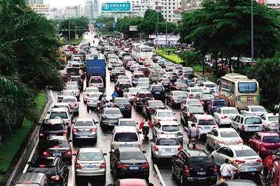 左图:龙昆南路堵车严重。