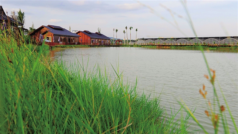 6月24日,沐浴在夕阳下的屯昌汇丰休闲农业示范园。该园占地千亩,投资上亿元,分为高科技(有机瓜菜、新奇植物)种植区、农家乐餐饮服务区和休闲农业运动区等片区,集科研、生产、休闲、旅游于一身,是我省高科技农业示范项目。