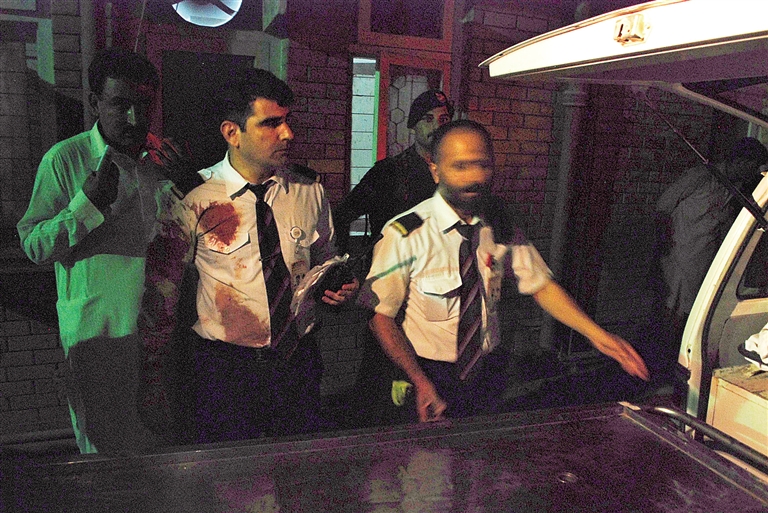 6月25日,在巴基斯坦白沙瓦的一所医院,巴基斯坦国际航空公司员工陪同运送遇难者遗体。 据巴基斯坦媒体25日报道,一架客机24日深夜在巴基斯坦西北部白沙瓦机场着陆时遭不明身份武装人员袭击,造成至少一人死亡、两人受伤。 新华社/路透