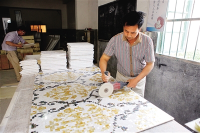 6月25日,江西省都昌县周溪镇腾骏贝类加工企业的员工在打磨“马赛克”建筑家居装饰产品。 都昌县有“中国淡水珍珠之乡”的美誉,近年来,该县在大力发展淡水珍珠养殖加工的同时,顺势延伸产业链,利用珠贝加工成工艺品或马赛克等建筑装饰材料。 目前,全县年加工贝壳超过10万吨,“珠贝”产业年产值5亿元以上。