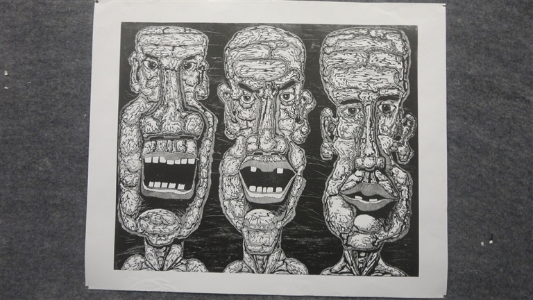 这20多幅版画作品是由省美协版画教学创作基地的学员们创作的。5年前,深感于海南美术水平在全国的落后现状,省美协选定了版画作为角逐全国美展的主攻方向,在琼台师院成立了版画教学创作基地,引进人才设备、培养学员,为第12届全国美展做准备。