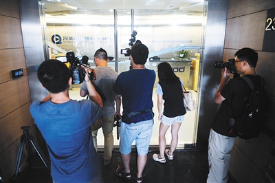 6月26日,媒体记者在位于深圳高新科技园的快播公司总部外等待。 当日,深圳市市场监督管理局(知识产权局)正式向快播公司送达了《行政处罚决定书》,2.6亿元罚单即日生效。