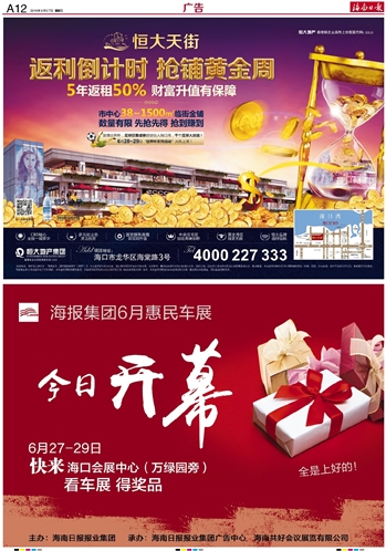 | 海南日报 广告 012 2014-06-271 2014年06月27日 星期五 |