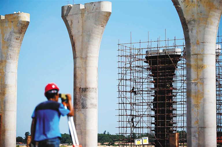 据了解,作为省政府“十二五”重点建设项目定海大桥是连接海口、定安、澄迈三市县的重要交通枢纽。桥梁全长1106米,为双向4车道,设计行车速度为60公里/小时,计划总投资4.6亿元。本报记者 张杰 特约记者 林先锋 摄