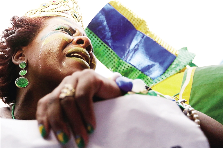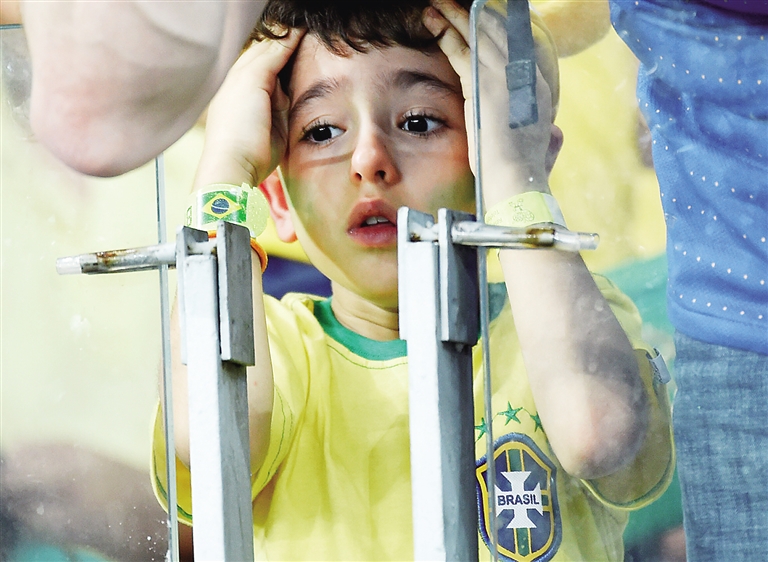 按理来说,年轻人面对突如其来的打击反应会更极端一些,可球场外巴西少年少女们,居然比老一辈的更想得开,成群结队的不是载歌载舞,就是高喊“巴西、巴西”的口号,要是看到身边有表情郁闷的球迷,就会将其围起来闹个不停,直到对方释然一笑才肯离去。